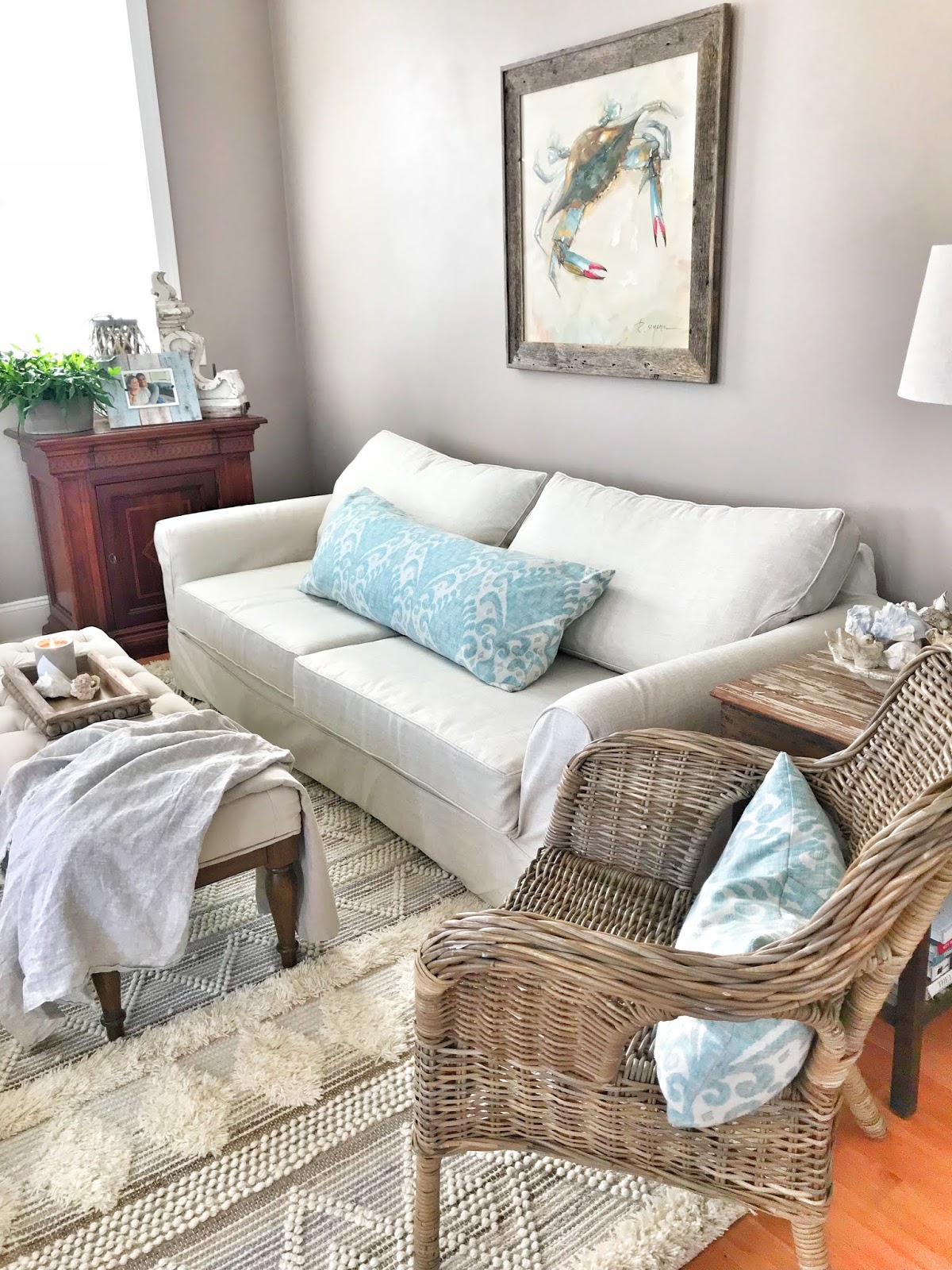 I am obsessed with pillows but I decided one long pillow on this Pottery Barn sofa was enough.